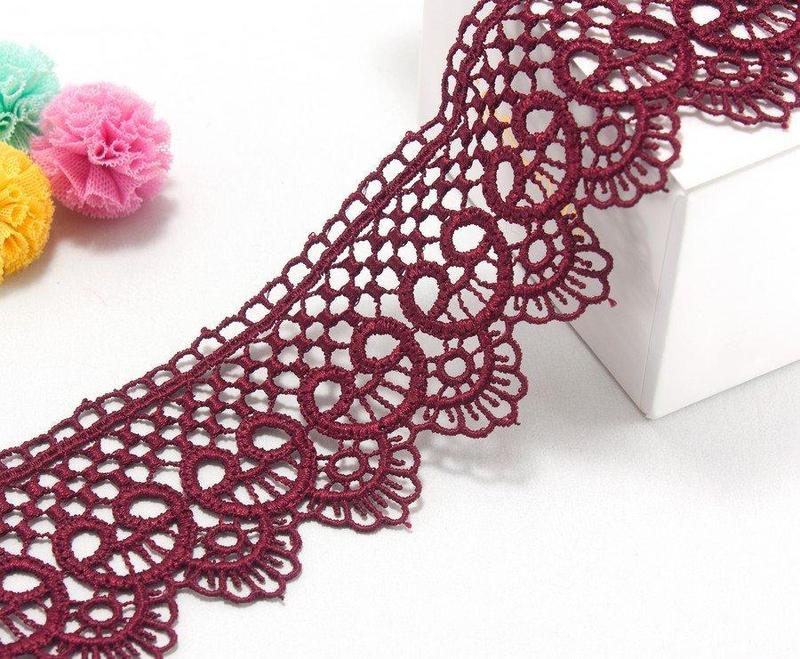 (1 метр) кружево макраме 5см завиток цвет - бордовый