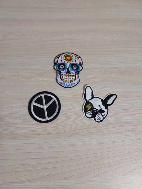 Три термо патчи с вышивкой, разноцветный череп,размером 9×7см, песик черный с белым и желтым цветом - 7×6см, и круглый знак свободы чернобелый - 6,5× 6,5см. На вид как новая, возможная клеиты, можно пришивать. Качество отличное, без недостатков. Цена указана за три патчи.