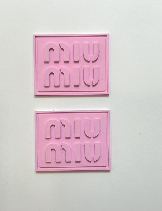 Гумова лейба пришивна 5*4см об’ємні букви колір рожевий логотип