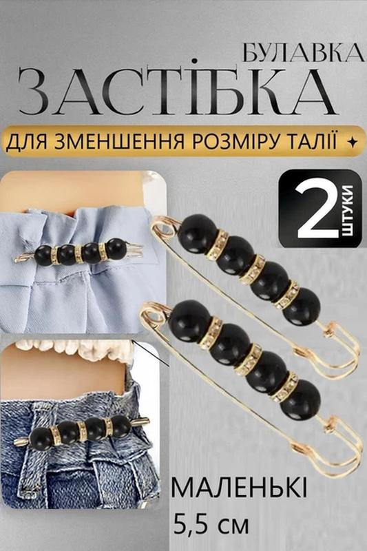 Фиксатор для уменьшения размера одежды маленькая золотистая с черным жемчугом 2 комплекта