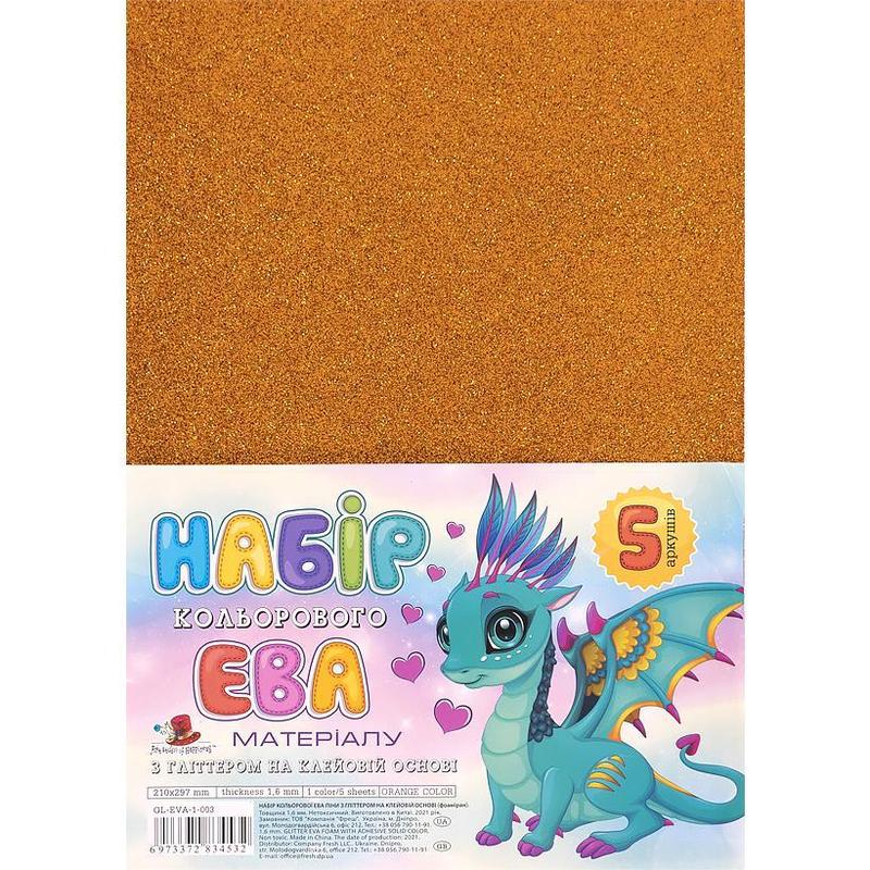 Фоамиран оранжевый с глиттером на клеевой основе, 5 листов в наборе