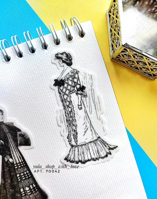 арт. Ї0042 ✨Роскошная коллекция набора наклеек для творчества - милые госпожи в элегантном винтажном наряде. ✨ Полупрозрачные и детально подобранные, они прекрасно дополнят ваши проекты творчества. ✨Размеры наклеек разные: +/- 4*8см В наборе 20 стикеров Цена набора - 27грн Пишите, я на связи)
