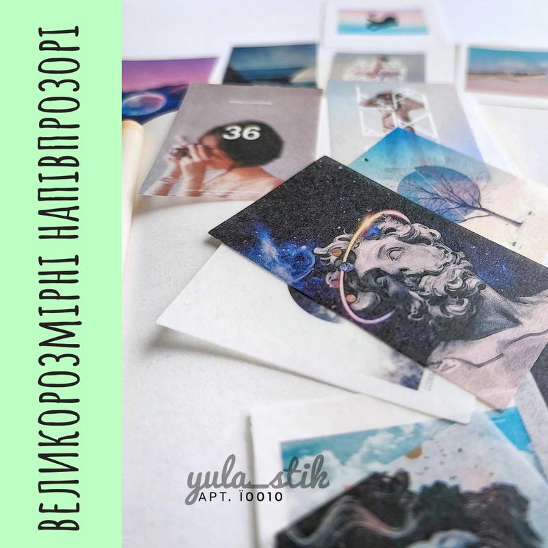 арт. Ї0010 Напівпрозорі Космос, планети, абстракція.... розмір різний: +/- 62*33мм В наборі 24 наліпки, без повторів Ціна набору - 39грн Пишіть, я на зв'язку)