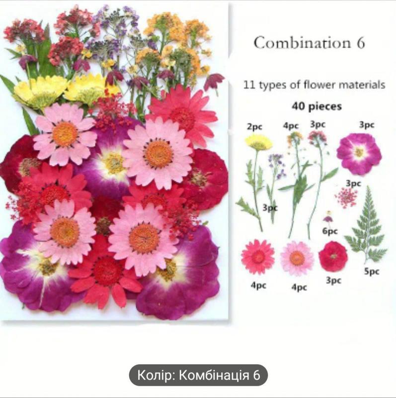 Сухоцвіт набір пресованих сушених різнокольорових квітів листя для ювелірних виробів з епо...