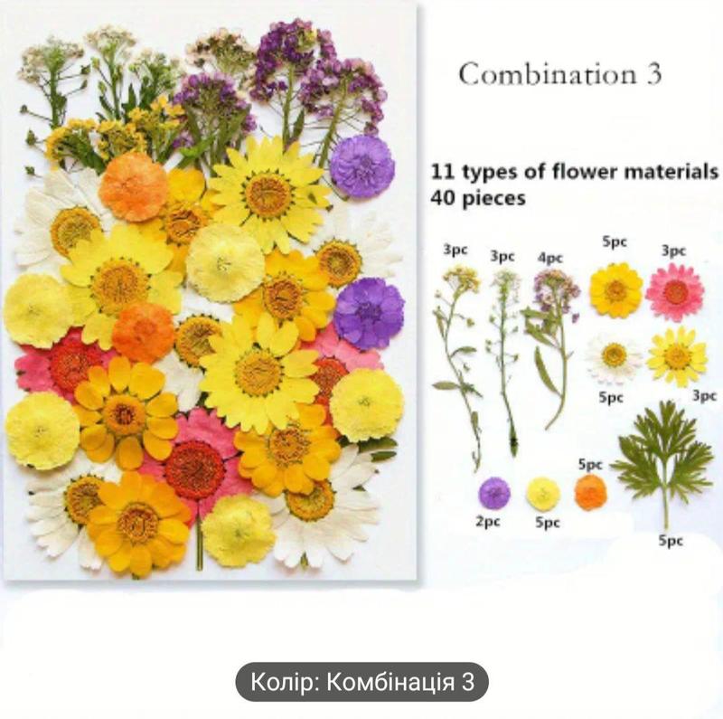 Сухоцвет набор прессованных сушеных разноцветных цветов листья для ювелирных изделий из эп...