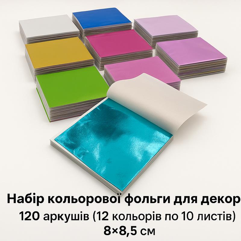 Набор цветной фольги для декора 120 листов (12 цветов по 10 листов) 8×8.5 см