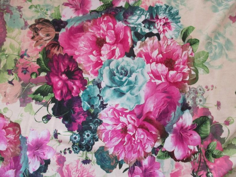Ткань для шитья одежды: отрез трикотажа-микромасло в цветочный принт