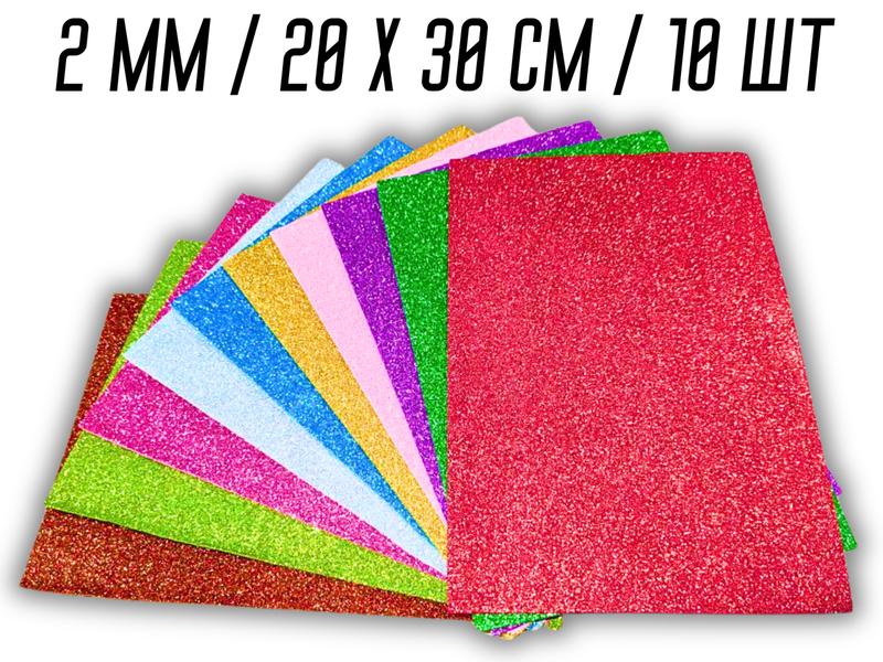 Фоамиран блестящий/глиттерный неклеевой комплект из 10 цветов 2мм/20х30см