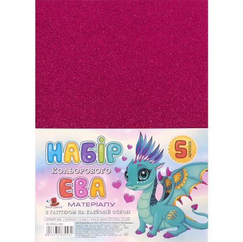 Фоамиран фуксия с глиттером клеевое основание gl-eva-1-adh-005 а4, 21х29,7см, 1.6 мм, 5 ли...