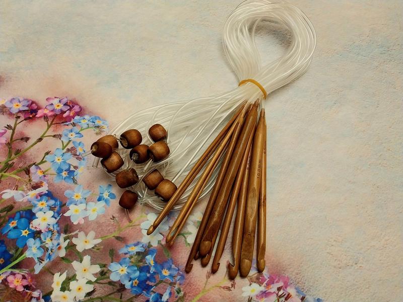 Набір бамбукових гачків для туніського в'язання, 12 штук. Довжина волосіні 106