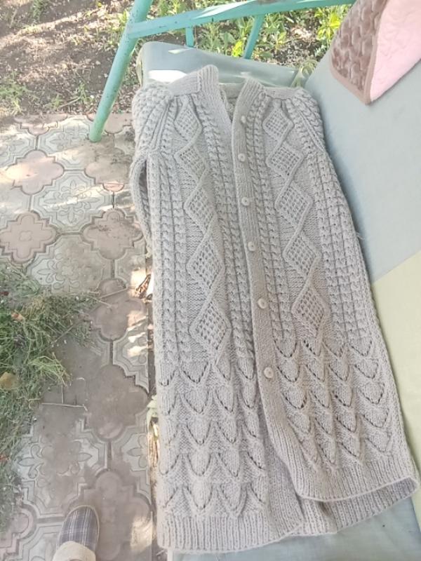 Кофта для летней женщины длинная, шерстяная, шерстяная нить полностью.