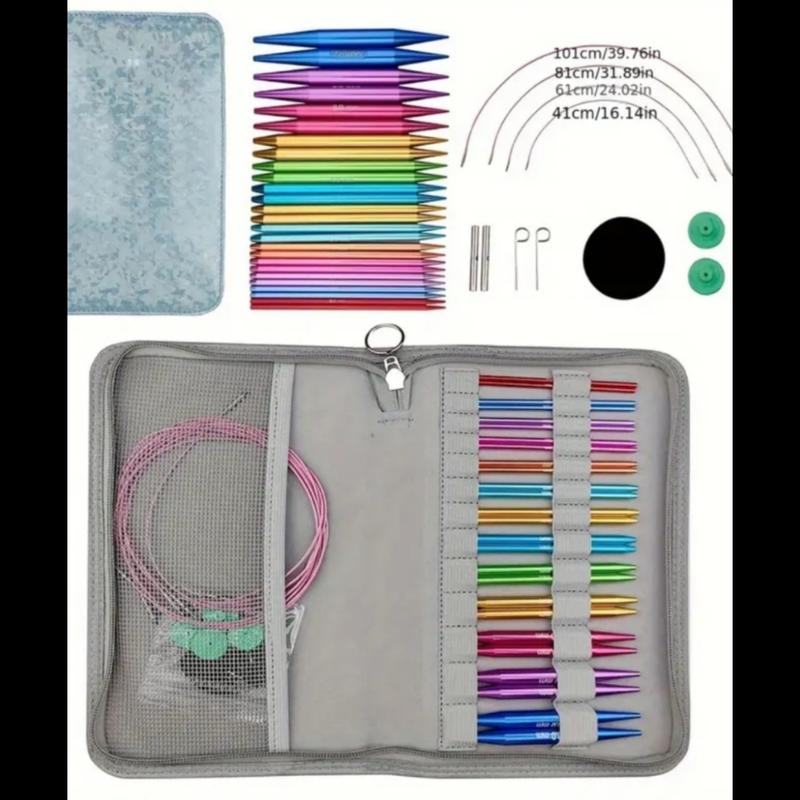 Набор сменных спиц Размер: Проволока: 40/60/80/100 см Спиці: 3/3,25/3,5/3,75/4/4,5/5/5,5/6/7/8/9/10 Набор из 13 пар сменных круговых спиц отлично подойдет и новичкам, и опытным мастерам. Весь набор сложено в специальный пенал с застежкой. Спицы качественные, металлические, с удобными зауженными кончиками, чтобы легко подхватывать петли. Номеры спиц выгравированы лазерной гравировкой, поэтому со временем номера не сотрутся. Длина каждой спицы ~10 см. Резьба на соединительных элементах выполнена точно и качественно, в процессе работы не разкручивается. При вязании пряжа хорошо скользит по спицам и по тросику. Также есть 4 заглушки, чтобы каждую спицу можно было подключить к отдельному тросу, превратив их с круговых в раздельные.
