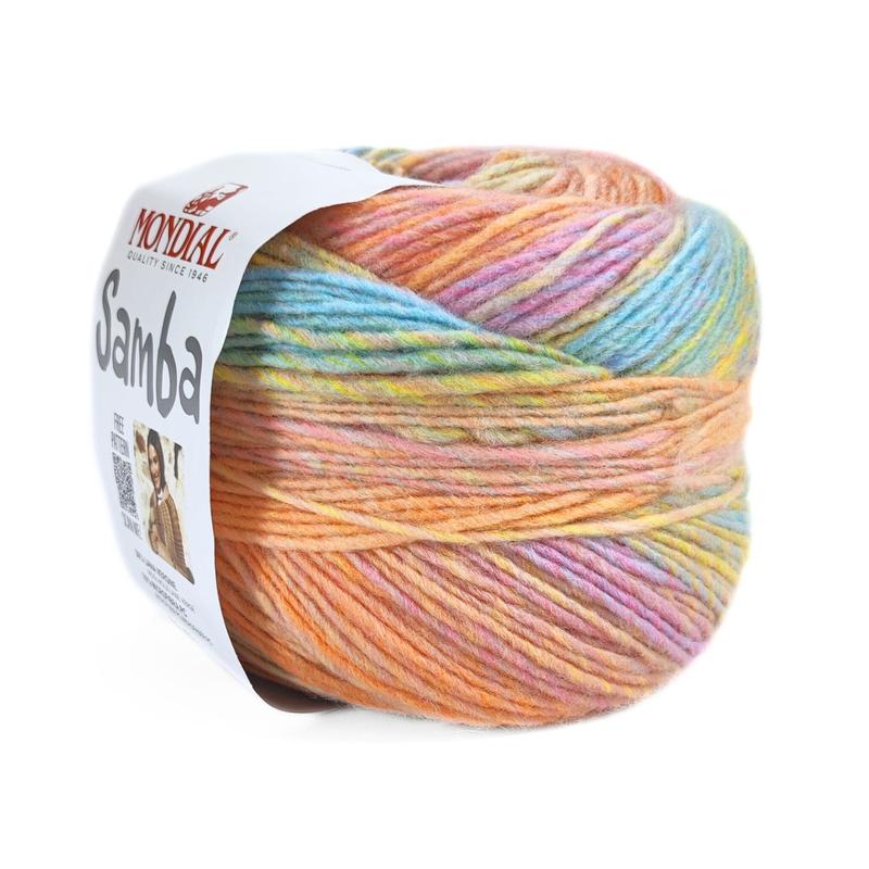 Пряжа Samba от итальянского производителя Mondial - это разноцветная пряжа, созданная из смеси шерсти и ультратонких волокон, что делает ее не только теплой и долговечной, но и легкой в работе. Пряжа Самба подходит для вязания джемперов, аксессуаров, кардиганов и вещей для дома. SAMBA от Mondial доступна в мотках весом 200 г и 400 м для вязания спицами 5,5-6,5 мм или крючком 4,5-5 мм. Купить пряжу Вы можете в нашем интернет-магазине ********** или посетить наш магазин в Киеве по адресу: ул. Стеценка, 30, линия 3, дом. 40. Мы предлагает возможность покупать пряжу, как в розницу, так и оптом, с оперативной доставкой по Украине. Благодаря быстрому обслуживанию и высокому качеству товаров мы гарантируем, что каждый ваш проект станет воплощением вашей индивидуальности и творческого вдохновения. Внимание! Цвет и оттенок пряжи могут отличаться в зависимости от настроек вашего экрана и освещения.