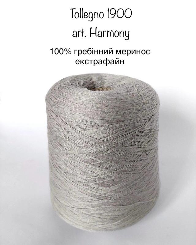 Пряжа меринос екстрафайн Tollegno 1900 art. Harmony. Склад: 100% меринос екстрафайн Довжина: 1500 метрів у 100 грамах (2/30) Ціна - 97 грн моток 50г Колір - світло сірий. Harmony - один із найкращих мериносів у світі. Класичний , ніжний двониточний гребінний меринос з шовковистим блиском . Супер приємний на дотик і до тіла , тому підходить людям з чутливою шкірою і діткам . Мʼяка гребінна пряжа, ідеальна для будь-яких виробів. Прекрасно тримає резинку та будь-які візерунки, не косить в лицьовій гладі . Harmony чудово підходить для машинного та ручного в’язання. Вибір розміру спиць залежить від кількості складень . Ниточку в 4 складення можна в‘язати спицями 3-3,5 мм.