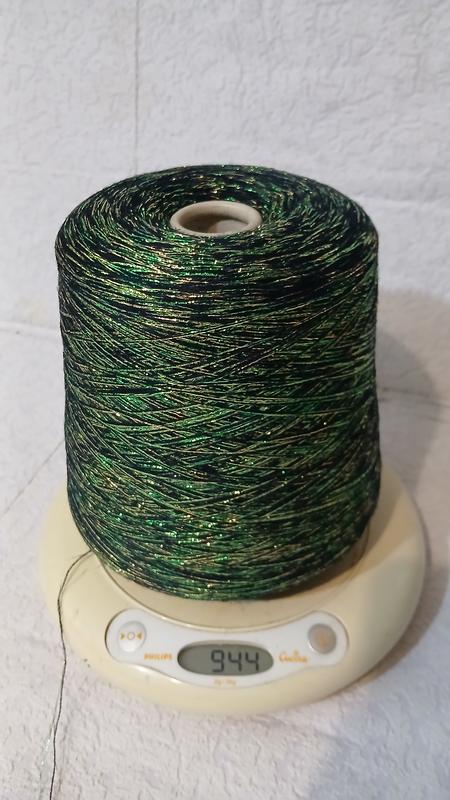 Ниточка очень красивая, зарядная. Подойдет для платья или свитера. что именно в составе сырья сказать не могу. в составе три ниточки. одна черная 100% шерсть, сгорает полностью с запахом перьев. две другие люрекс. отматываю в мотки сколько потребуется. ціна за 100 грам.
