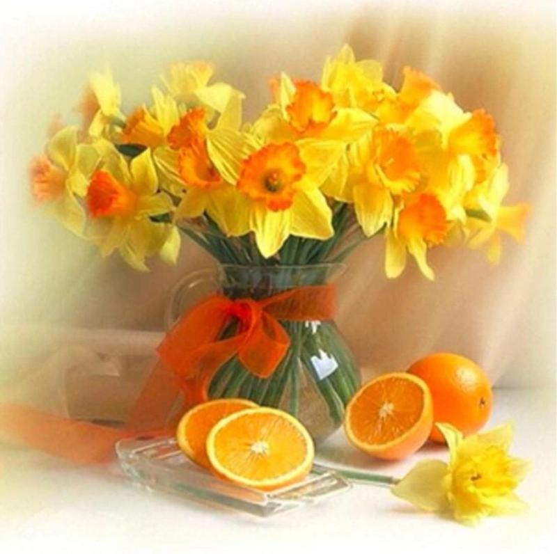 Алмазная вышивка "букет из жёлтых нарциссов",цветы,букет,частичная выкладка,мозаика 5d,наб...
