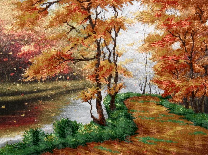 Набор для вышивки бисером "осенний пейзаж "цветы, клён, листья, пейзаж, сад, небо частична...