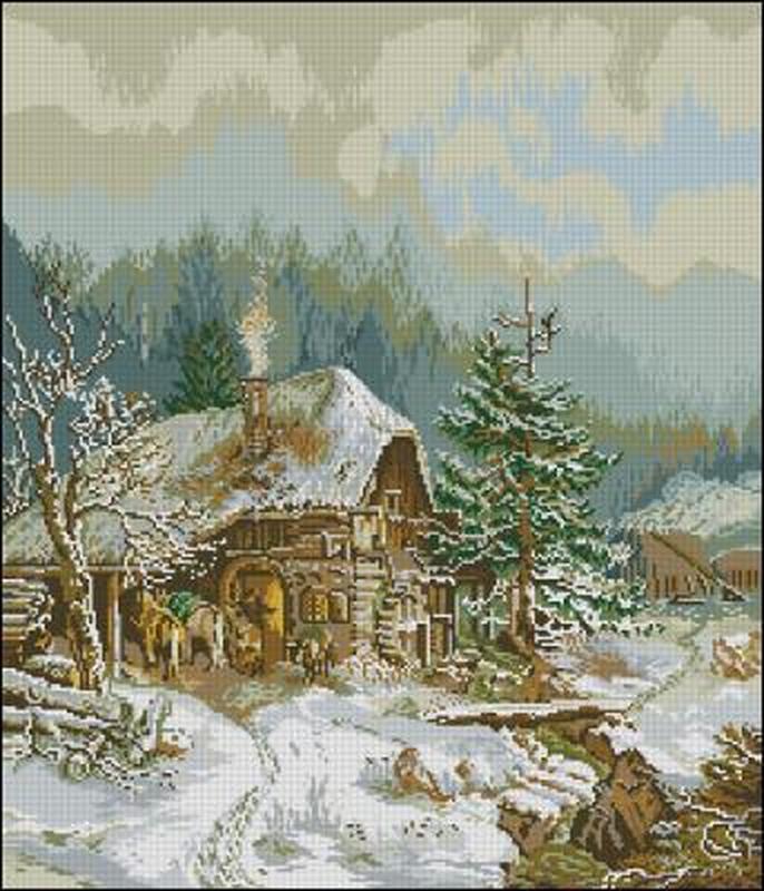 Набор для вышивки крестиком. размер: 36*42 см зимний пейзаж