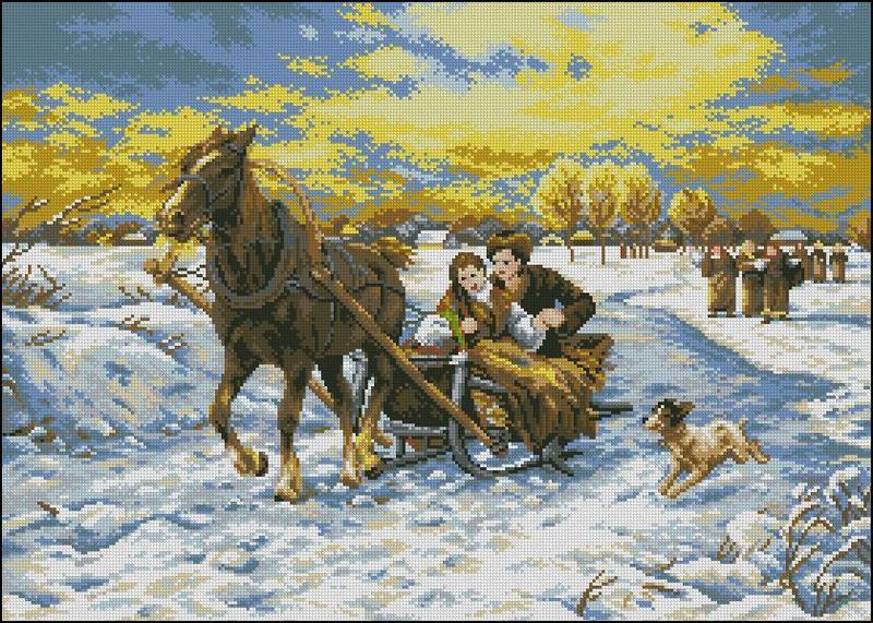 Набор для вышивки крестиком. размер: 42*30 см зимняя прогулка