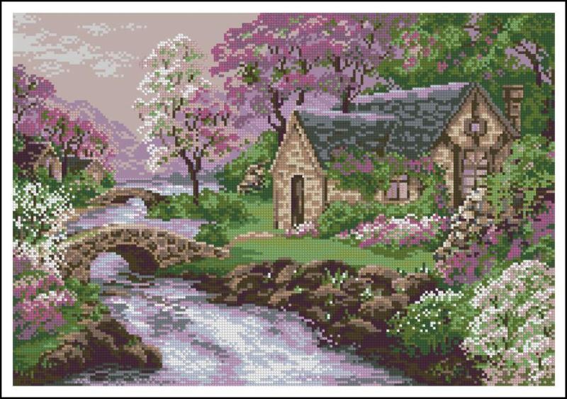 Набор для вышивки крестиком. размер: 33*23 см весенний пейзаж
