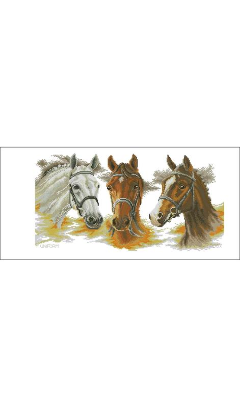Набор для вышивки крестиком. размер: 50*24 см тройка лошадей