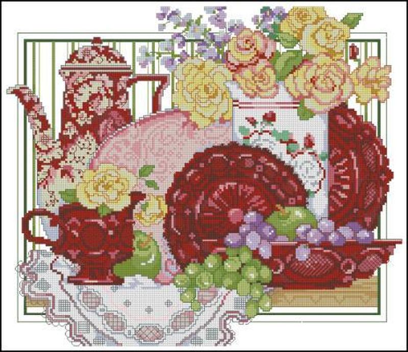 В состав набора входит: канва (аида 16), нитки СХС, игла для вышивания, схема, инструкции. Размер: 26*30 см