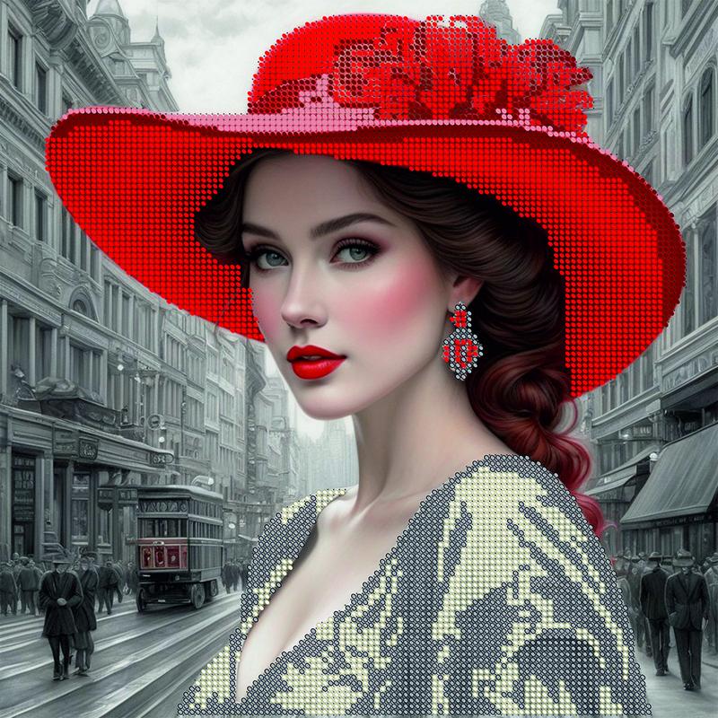 Схема для вышивания бисером магия бисера к-3 023 девушка в красной шляпе размер 28,5*28,...
