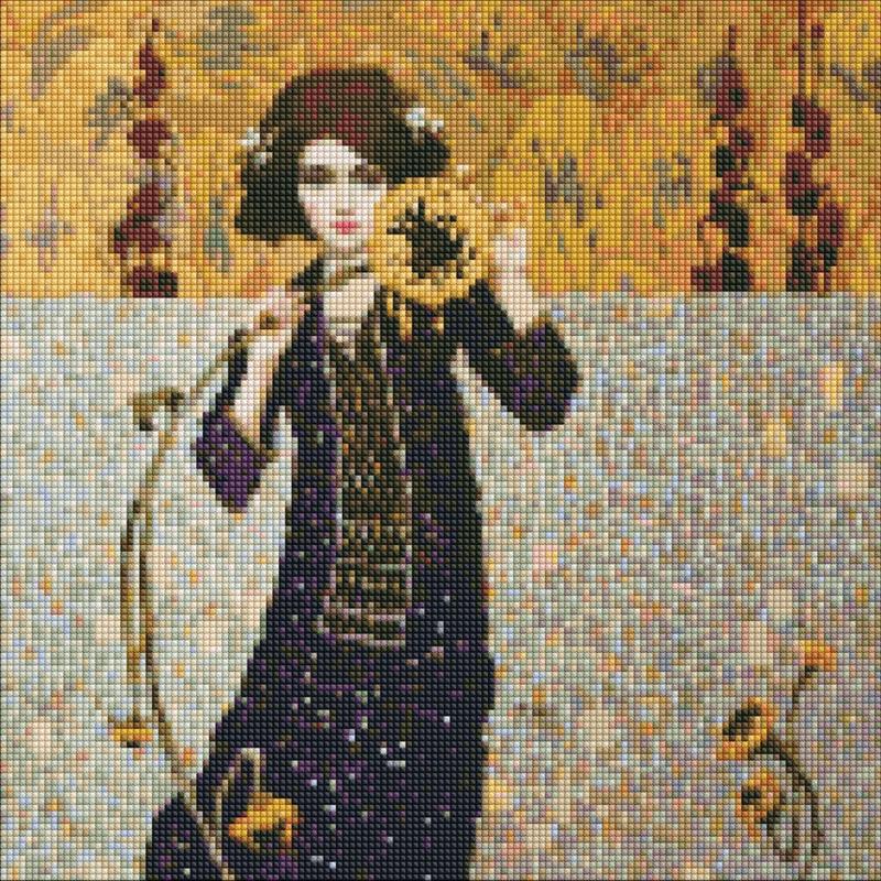 Алмазная мозаика "девушка с подсолнечником" amo7383 40х40 см