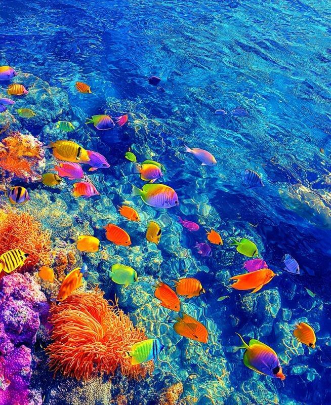 Алмазная мозаика "Яркий риф", 30*40см, на рамке В наборе: -холст с клеевым слоем, -набор круглых стразов, -пластиковая ручка-стилус, -гель-клей (силикон) для стилуса, -пластиковая емкость-лоток для стразов.