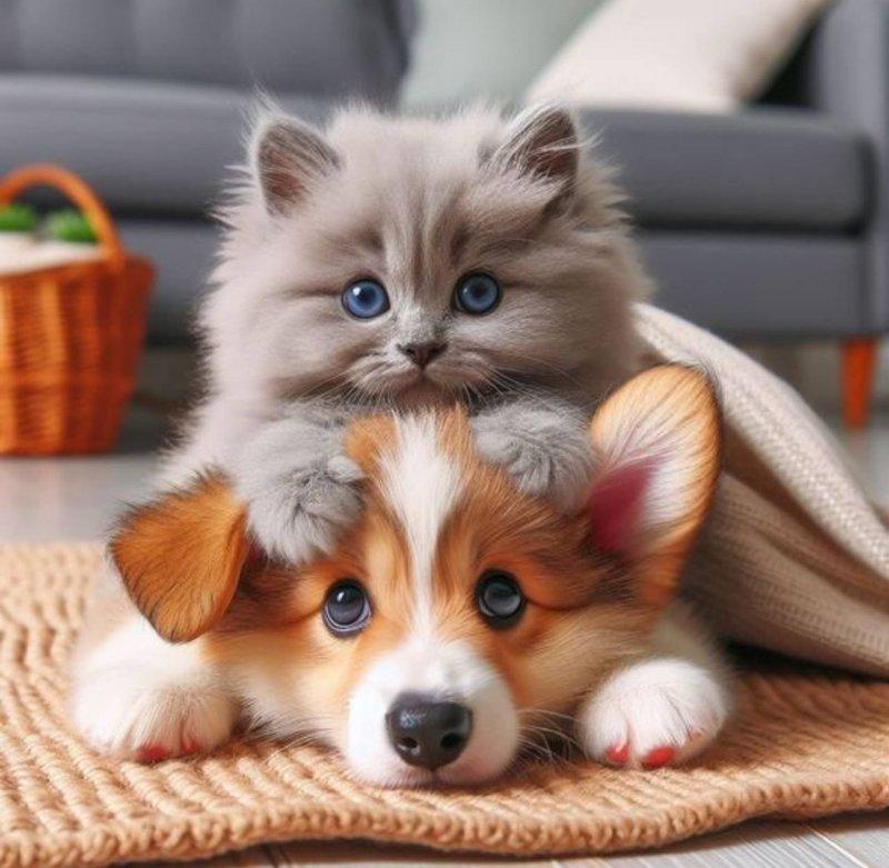 Алмазная мозаика "Щенок и котенок", на рамке, 20*20 см. В наборе: - холст с клеевым слоем, - набор круглых стразов, - пластиковая ручка-стилус, - гель-клей (силикон) для стилуса, - пластиковая емкость-лоток для стразов.