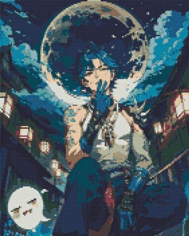 Набір алмазна мозаїка аніме геншин імпакт сяо на тлі місяця 40х50 см орігамі (od30150) od3...