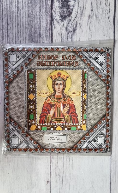 Набор для вышивки бисером иконы св. Ирина 6155 Артикул: Д6155 В набор входит бисер Slovenska Busa 7 цветов, пришивные камни, бусины, ткань для вышивки с нанесенным рисунком (атлас), игла, инструкция Размер: 16 х 15 см