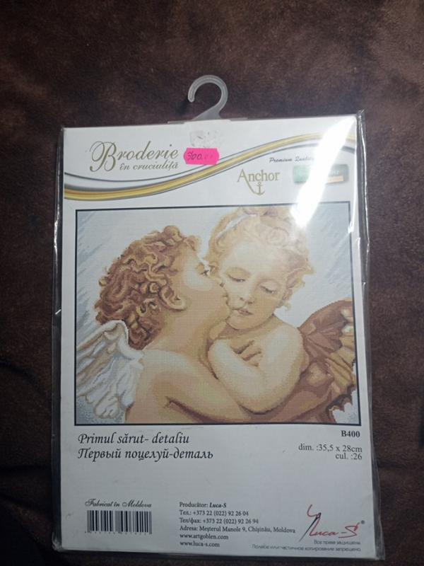 Набір для вишивання нитками анкор, якісна та в красивих кольорах. Назва "Перший поцілунок"