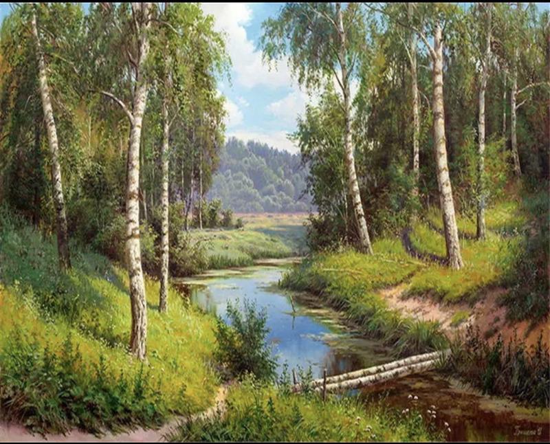 Набор для вышивания крестиком " мостик через берёзовую рощу"