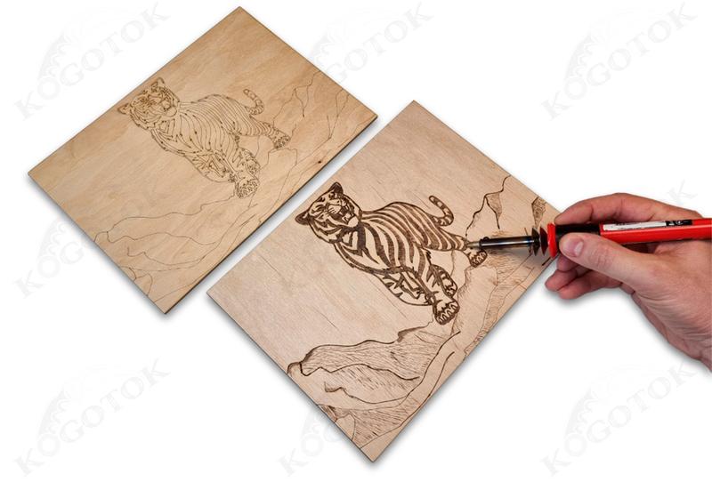Фанера для обжига 4 мм с нанесенным рисунком "тигр". формат а4. художественная тонировка.
