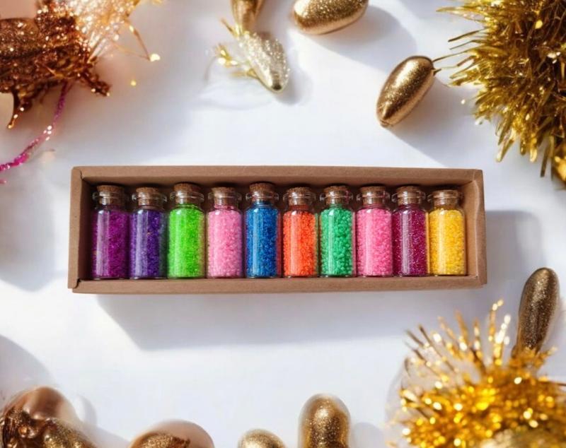 Набор бисера 10 цветов по 20 грамм в стеклянных баночках