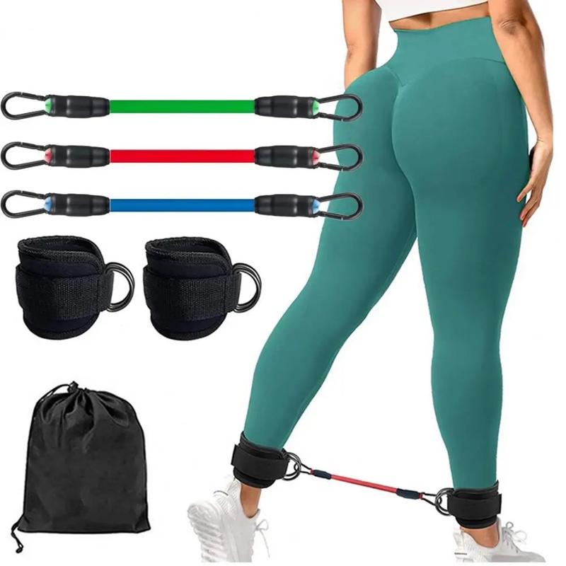 Набор универсальных резиновых браслетов для голеностопа из 5 штук с регулируемыми ремешками для тренировок силы, йоги и фитнеса - универсальные упражнения для ног и ягодиц, тренировка бедер, тонизирование мышц - в комплекте сумка для переноски из сетчатого материала