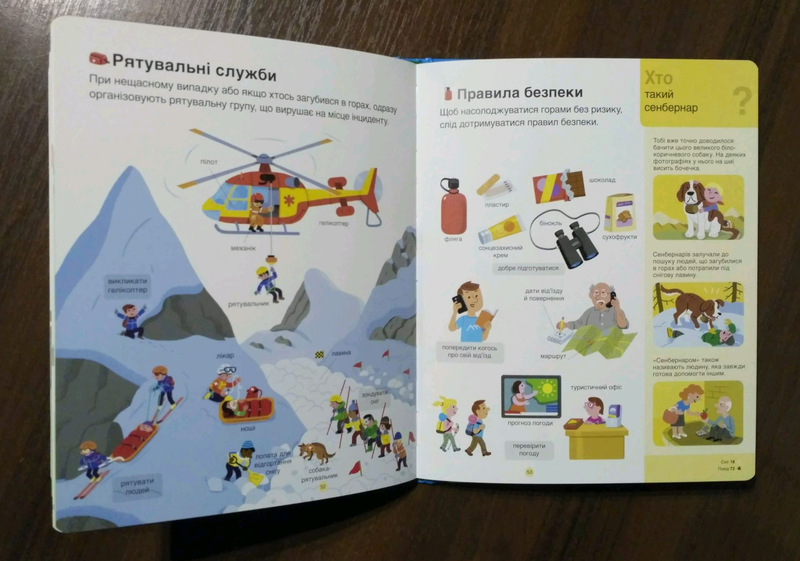 Кілька примірників у наявності #книголав Горі Ціна 216грн назва: La Montagne Автор: Дельфін Гюґе Мова: Українська Рік видання: 2019 Рік першого видання: 2016 Перекладач: Христина Ромашко Вік: Від 3 до 5 років, Від 6 до 8 років Ілюстратор: Маріон Кокліко, Іларій Фалорсі, Дідьє Балісевіч, Елла Шарбон Кількість сторінок: 80 Ілюстрації: Кольорові Формат: 200х245 мм Палітурка: Тверда, Картон Папір: Крейдований «Горі» французького автора Дельфіна Гюґе ‒ чудово ілюстрований довідник для найменших читачів. Книжка містить розділи, присвячені різним аспектам гір: відпочинку, зимовим видам спорту, походів, професіям тощо. У виданні є чимало цікавої та корисної інформації, яка допоможе дітям обрати для себе улюблений формат відпочинку чи пізнання світу. Яскраві ілюстрації та цікаві факти допоможуть дітям краще зрозуміти гірські системи та полюбити гори назавжди. Ця книжка особливо сподобається тим, хто захоплюється альпінізмом або просто любити природу. Нагадаємо, що у видавництві вийшла книжка «Футбол» із цієї серії. Гори – це неймовірна місцевість, де з висоти пташиного польоту, або й вище, ти можеш поглянути на світ. Це унікальні рослини й тварини, вічні сніги на вершинах, рясні зорі на ясному небі, свіже повітря й чиста вода. Гори можна дослідити у поході, приїхавши на екскурсію чи гірськолижний курорт. Альо завжди дуже важливо розуміти гірську місцевість та знаті правила. У цьому тобі й допоможе ця книжка.