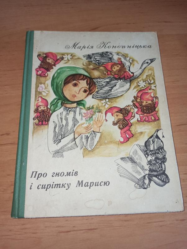 Марія Конопніцька Про гномів і сирітку Марисю. Повість. Скорочений переклад з польської. Малюнки Н.Григорової. Київ Веселка 1976 р. 179 с., іл. Палiтурка: Картонна, корінець тканинний, збільшений формат. Казка «Про гномів і сирітку Марисю» -твір видатної польської письменниці XIX ст. Марії Конопницької. В ній розповідається про добрих маленьких чоловічків - гномів, які допомагають чесним і працьовитим людям про бідну сирітку Марисю, в якої лисий та хитрий лис покрав гусей, про талановитого музику цвіркуна Сарабанду, про пихатого жабича Полупанека. Кольорові ілюстрації на окремих аркушах.