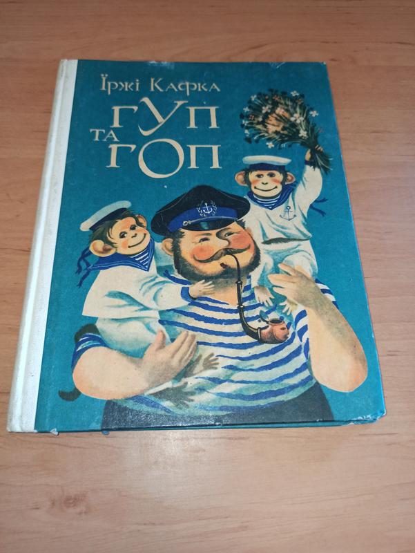 Їржі Кафка Гуп та Гоп, або Пригоди двох мавпенят і стернового Рибічки. Повість-казка. Переклад із чеської А. Неруш. Вірші в перекладі А. Пономарьова. Художники І. Вишинський і Н. Котел. Київ, Веселка 1975 рік. 128 сторінок. палітурка: Тверда, збільшений формат. Дощ ішов двадцять днів і двадцять ночей. Водою затопило острів і дві мавпочки були на волосок від загибелі. Мавпочок врятував Рибичка - керманич вітрильника. Мавпочки дуже полюбили Рибичку і постійно від щирого серця намагалися зробити йому що-небудь приємне. Але виходило зовсім навпаки... Чорно-білі ілюстрації