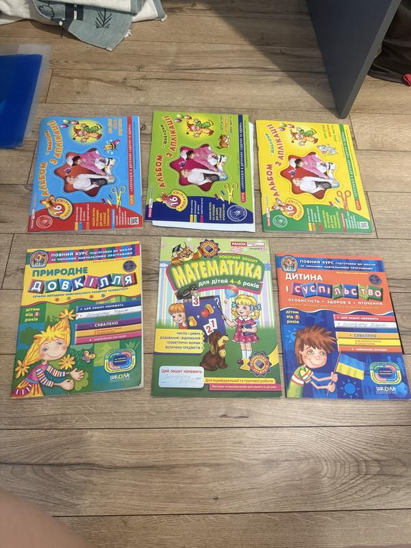 В наявності розвиваючі книги для дітей дошкільного віку. Стан різний. Альбоми з аплікації 3 штуки, вони мало користовані, майже нові, тобто вирізані для аплікації по 1-2 сторінки. Дитина і суспільство і Довкілля теж де-не-де зачеплені. Математика виконувалась найбільше, однак і там не все, є ще не роблені завдання. Ціна в оголошенні вказана за всі книги. В моїх оголошеннях є і інша література.