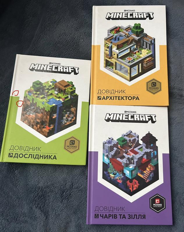 Офіційні довідники Minecraft. Для діток, з малюнками де все покроково розповідається. (Приклад прикріпила) Всі нюанси позначені на фото. Продам як окремо так і разом. Окремо: 1 книга без нюансів - 150 грн Ті що з маленькими нюансами - 120 грн Разом: 3 книги - 340грн