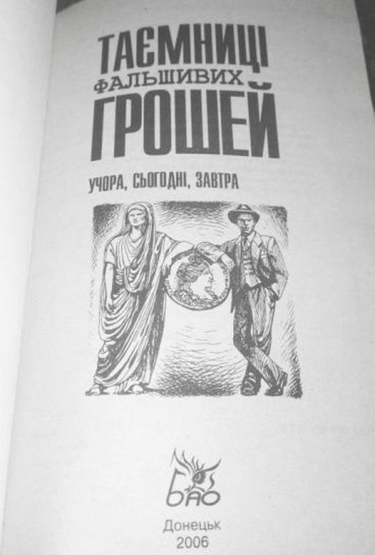 Таємниці фальшивих грошей. В. Пономарьов Видавництво «БАО», Донецьк, 2006р. Формат 84х108/32, 288 ст. з ілюстраціями, мова українська. Тверда, ламінована обкладинка. Книга як нова. Паперові та металеві, вітчизняні та іноземні, розмінна монета та раритети – все це гроші. Якими ще бувають грошові знаки? Справжніми та фальшивими. Ця ілюстрована книжка захопливо розповідає про історію підробки грошей з античності і до сьогодні, а також про цікаві випадки фальсифікації грошових знаків, про карколомні афери знаменитих фальшивомонетників.