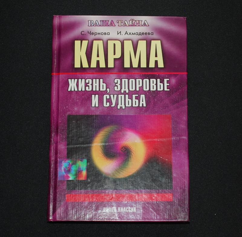 Чернова, Светлана; Ахмадеева, Наталия. Карма. Жизнь, здоровье и судьба. – М.: РИПОЛ КЛАССИК, 2003. – 384 с. (Ваша тайна) Стан: б/в у гарному стані. Карма... Это слово хоть раз в жизни слышал каждый, но мало кто знает, что карма напрямую связана со здоровьем человека. Из нашей книги вы узнаете о диагностике и причинах возникновения кармических заболеваний, их классификации и, быть может, сумеете правильно построить свою жизнь и быть здоровым. Для широкого круга читателей.