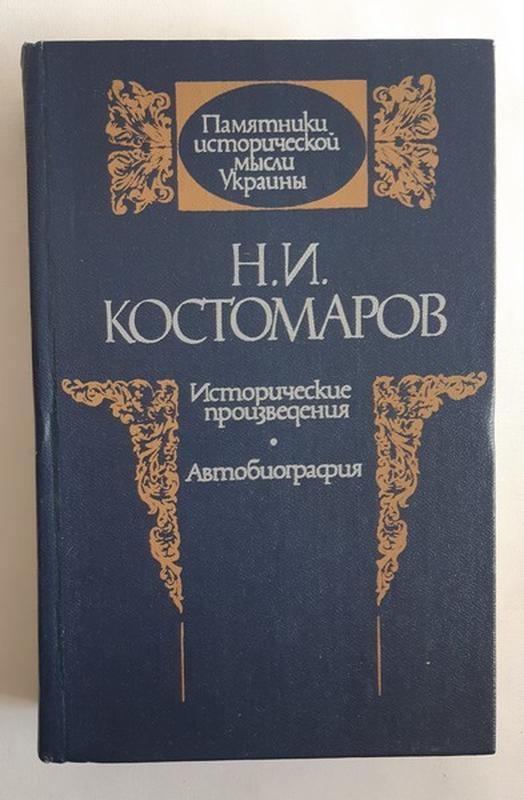 Костомаров Н.И. Исторические произведения. Автобиография. Киев: Издательство при Киевском государственном университете, 1989 - 735 с. (Памятники исторической мысли Украины) 55000 экз. В книгу избранных сочинений известного историка, этнографа, фольклориста и писателя Н.И. Костомарова (1817-1885) включены оригинальные исследования исторического прошлого Малороссии, яркие исторические портреты ее видных деятелей, а также `Автобиография` ученого, содержащая своеобразные зарисовки научно-литературной жизни его времени. Для преподавателей-обществоведов, научных работников, студентов, всех интересующихся отечественной историей.