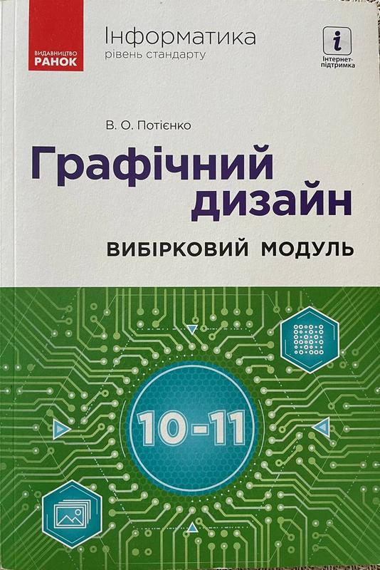 Анотация Содержание руководства соответствует требованиям учебной программы выборочно-обязательного курса по информатике для учащихся 10–11 классов общеобразовательных учебных заведений (уровень стандарта) и предназначен для изучения выборочного модуля «Графический дизайн». Пособие состоит из пяти глав и включает основные сведения о графическом дизайне, его тенденции и области применения, описание характеристик векторного и растрового изображения и инструментов их воспроизведения, алгоритмы проработки графических изображений, основы компьютерной верстаки и т.д. Издание содержит вопросы для контроля знаний, задачи для самостоятельного выполнения, дифференцированны по уровню сложности, и практичные работы. Предназначено для учащихся 10–11 классов заведений общего среднего образования и учителя информатики.