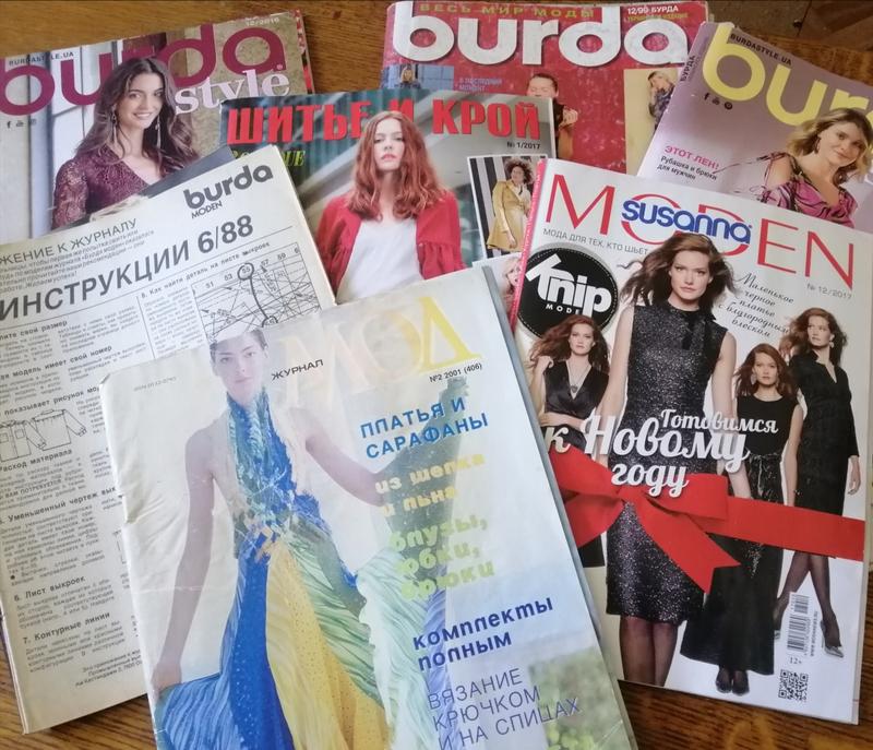 Журнали мод рiзних веробникiв та рокiв, починаючи з 1976р у великому асортiментi. Усi з викройками у хорошому станi По запросу зроблю фото вкладишу викройок