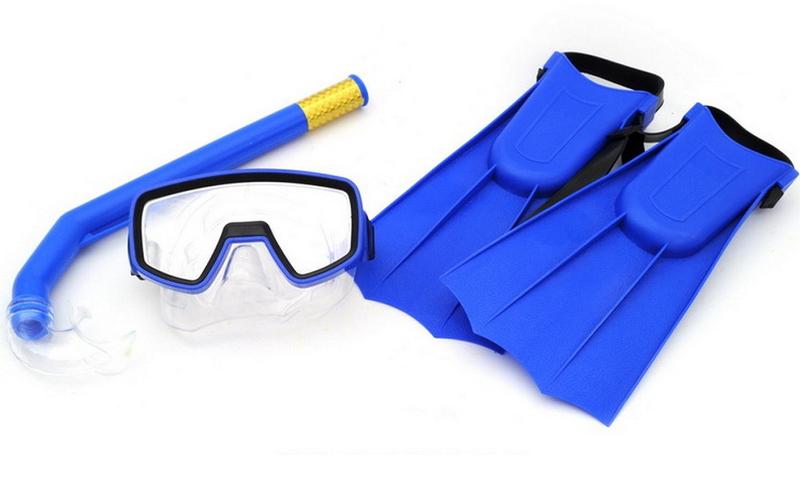 Яркий набор для плавания для детей. В наборе: ласты с резиновым ремешком, который можно регулировать по длине, маска и трубка. Размер упаковки 46 * 8 * 19 см.