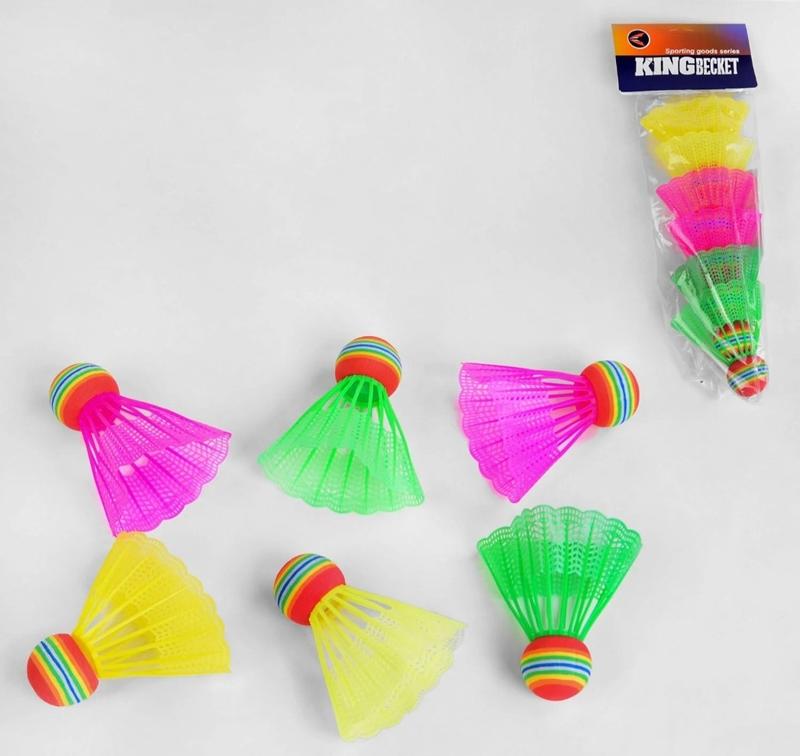 Розміри / габарити - Довжина (см): 7 см - Ширина (см): 3 см - Висота (см): 8 см Розмір упаковки: 11 см × 4 см × 34 см Упаковка: Пакет Вік: від 6 років Бадмінтон - це дуже цікава і корисна гра яка популярна в усьому світі. У бадмінтон грають діти і дорослі, однаково захоплюючись процесом. Не важливо новачок ти чи вже професіонал - бадмінтон з воланчиком в стильному виконанні стане відмінним подарунком для кожного гравця! Воланчікі, кожен з яких розміром 7 см х 3 см х 8 см, запропоновані по 6 штук в одній упаковці. Матеріал - пробка та пластик. Колір воланчиків: червоний, жовтий, рожевий і зелений.
