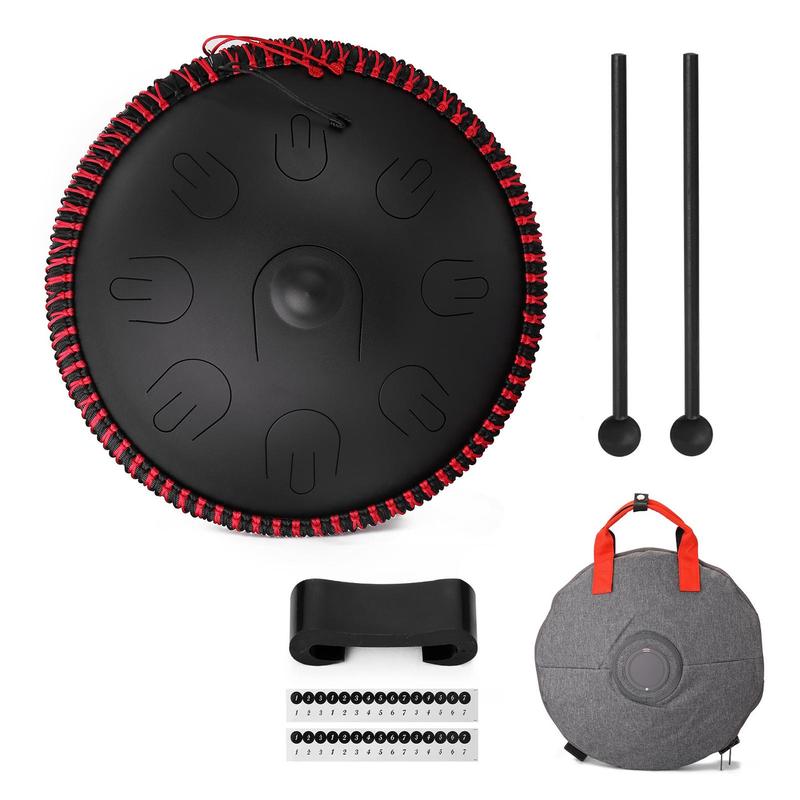 Тональность Ре-минор Медная сталь Это перкуссионный мелодический инструмент глюкофон с обертонами, разработанный на основе хэндпана, с основной нотой и октавным обертоном. Центральная выпуклая нота специально спроектирована для имитации ноты "динг" хэндпана, что позволяет игрокам с опытом игры на хэндпане быстро адаптироваться. Или новичкам, которые в будущем хотят научиться играть на хэндпане. Этот барабан можно играть так же, как и хэндпан, как октаву или обе ноты одновременно. С размером всего 40 см он значительно удобнее для переноски и игры, чем традиционный хендпан. Можно играть как руками, так и палочками Комплектация: 1* язычковый барабан 2* барабанные палочки 1* сумка для переноски.